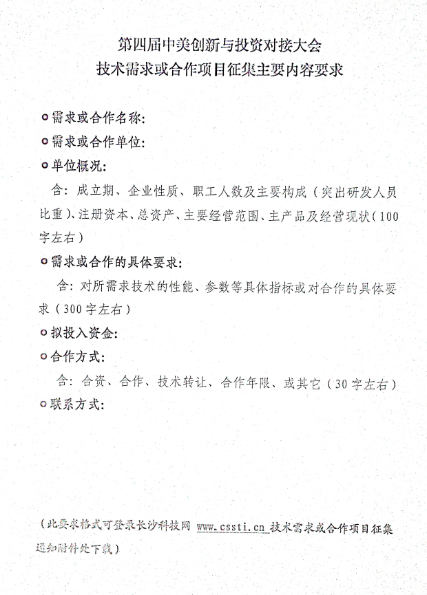 关于征集第四届中美创新与投资对接大会技术需求或合作项目的通知